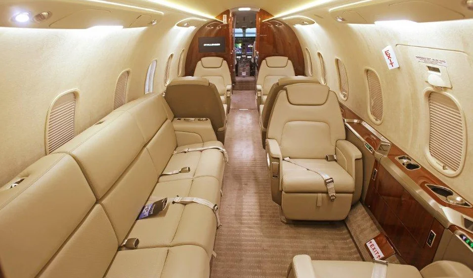 The cabin of the Challenger 350 measures 28 feet 7 inches in length, 7 feet 2 inches in width, and 6 feet 1 inch in height, offering ample space to work or relax. The plush seating and elegant interiors create a welcoming atmosphere, ensuring every flight is productive and comfortable.