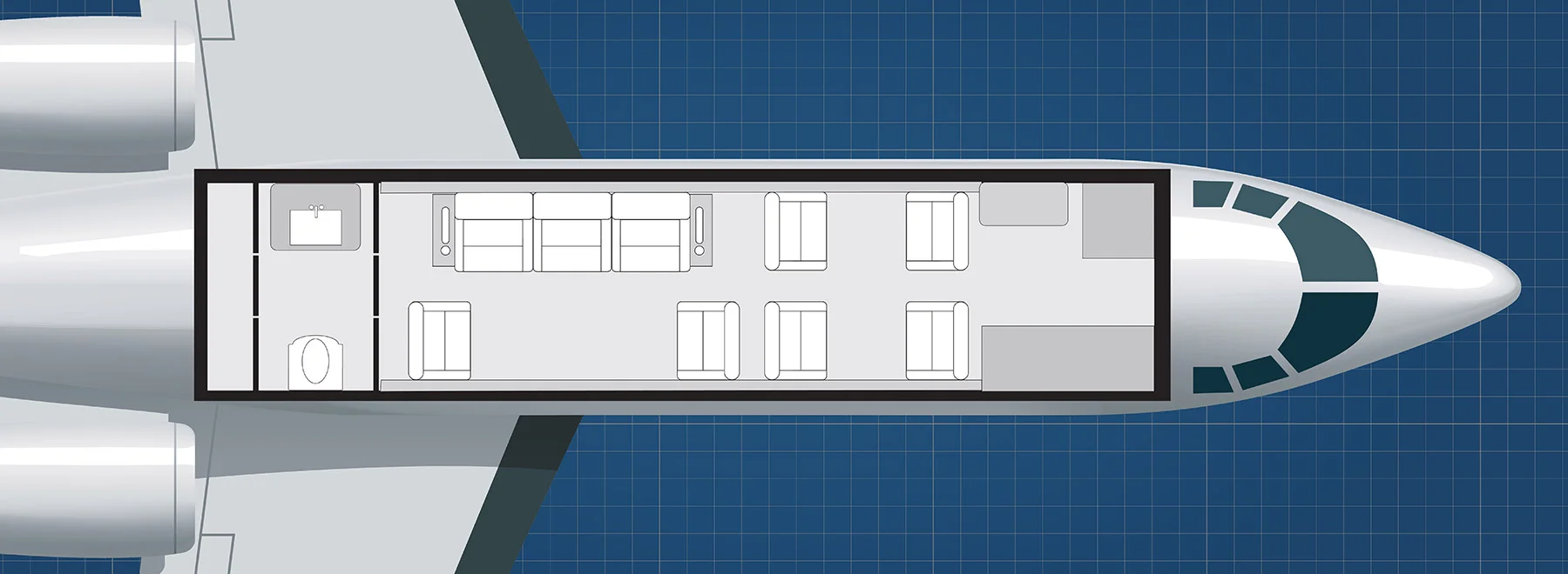 The Challenger 350 offers a range of 3,682 miles at half capacity, enabling you to fly non-stop from Dallas to key business hubs such as Manaus, Brazil, Grenada, Fairbanks, AK, and Quebec, CN. Its impressive range ensures fewer stops, giving you more time to engage with your business at your destination. Designed to accommodate up to 9 passengers, the Challenger 350 features a spacious cabin with luxurious seating and a range of amenities to enhance your business travel experience:
